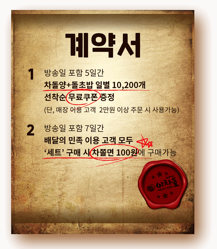 · 매장 이벤트 ( 차돌양, 돌초밥 무료제공 )